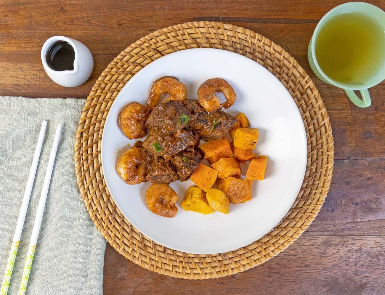 Korean Beef and Shrimp Bowl with Butternut Squash