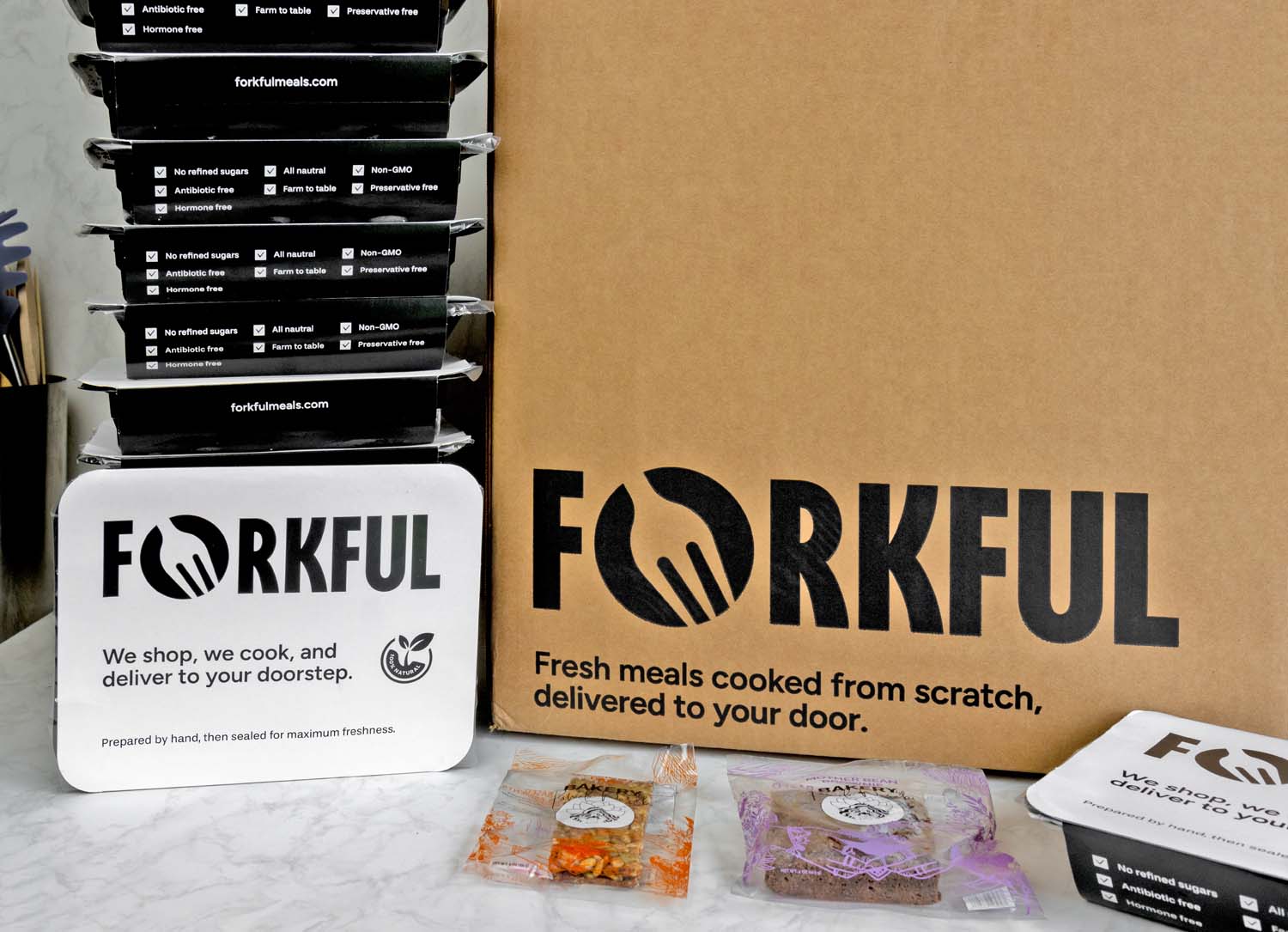 What is Forkful meal delivery? Forkful is a prepared meal delivery service shipping fresh, chef-cooked meals nationwide. All meals arrive fully prepared using natural ingredients and require only reheating before consumption.