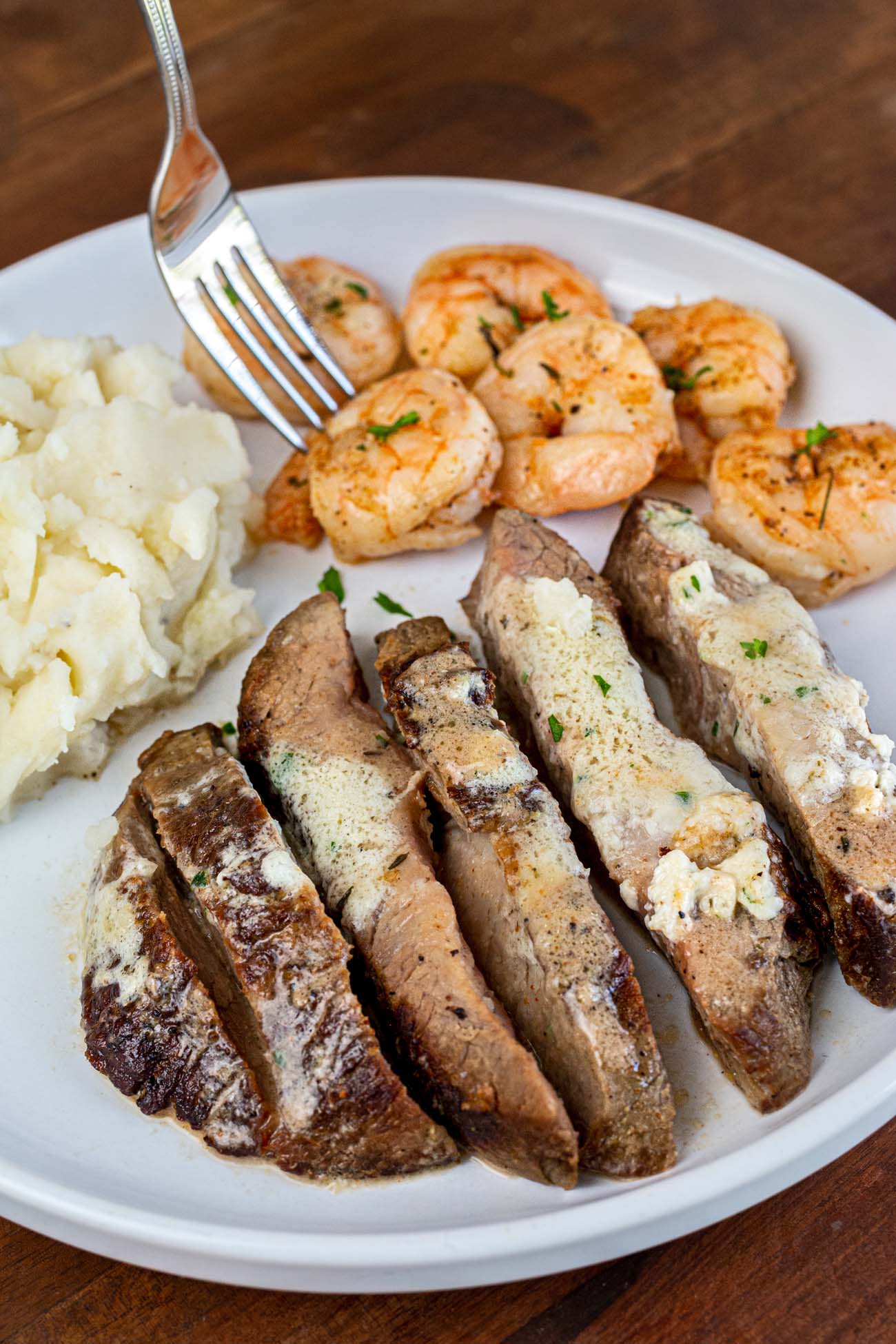 Garlic Butter Steak and Shrimp with Potato Mash (Surf & Turf)
