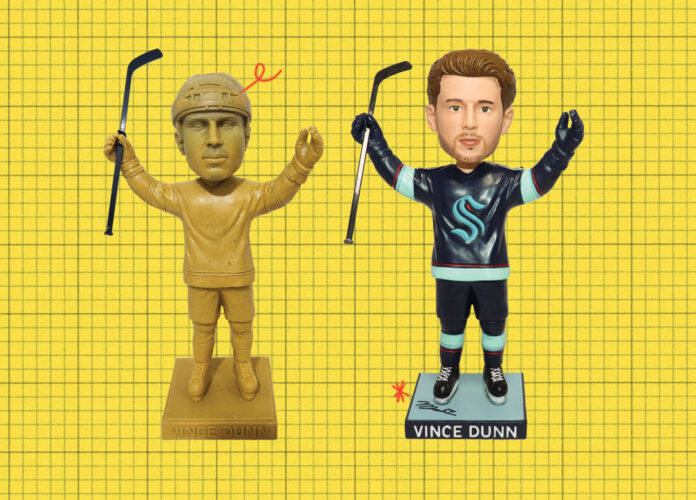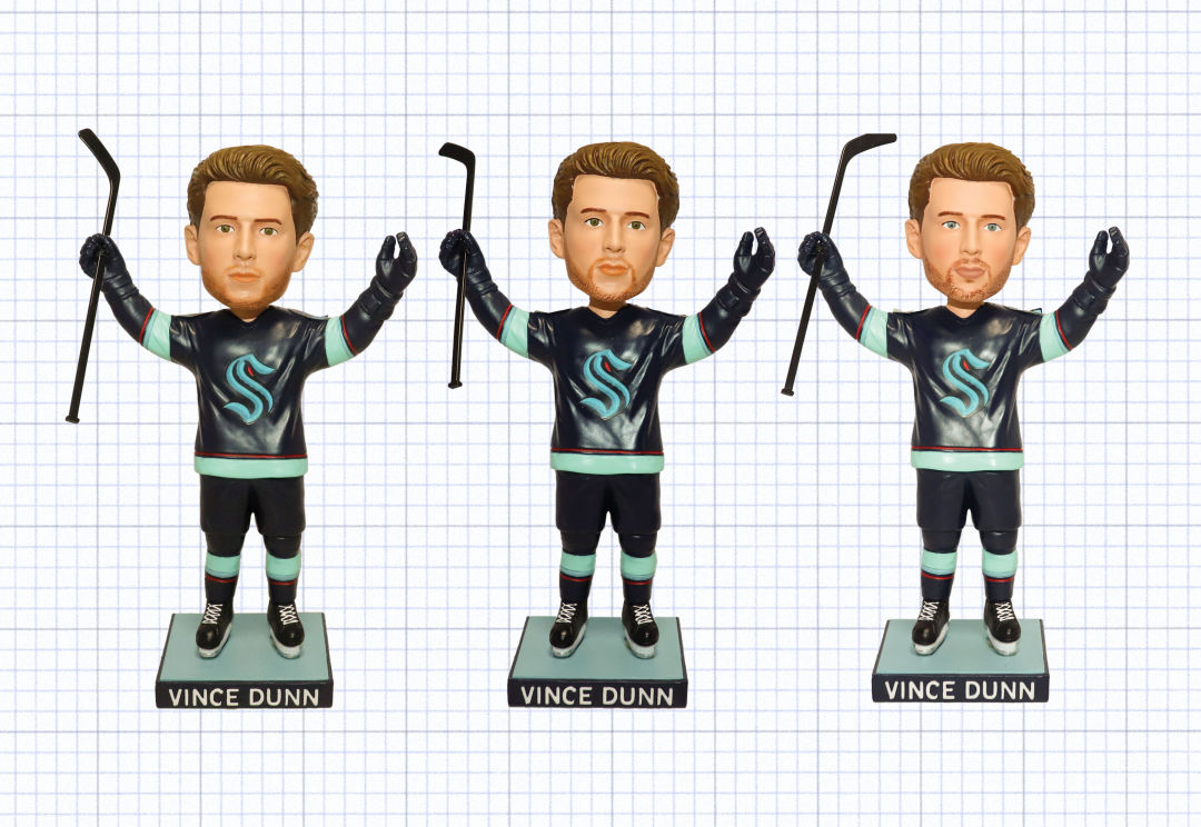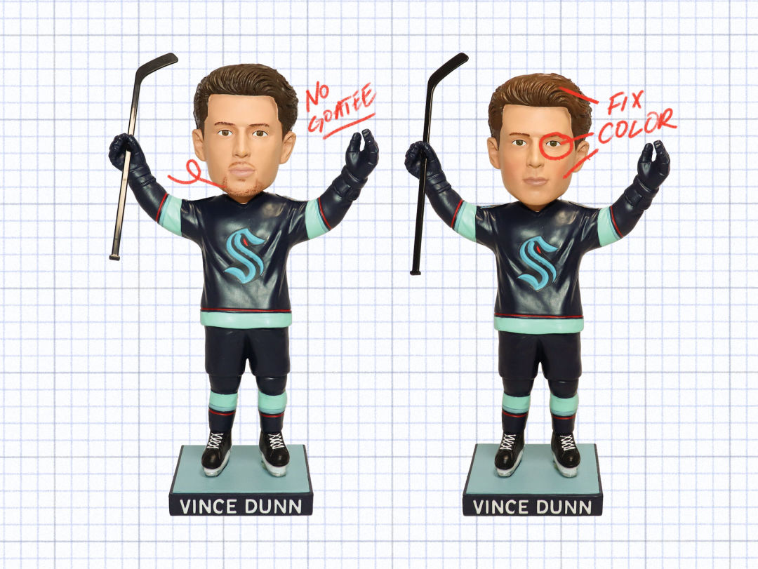 And they really do all tell a story. Shabz shepherds each Kraken bobblehead from conception all the way to distribution: a painstaking and highly detailed process that often includes a dozen revisions and some uncomfortably close examinations of players’ physical features. Bobbleheads might be silly, but that doesn’t mean they shouldn’t be made with love. “If someone’s going to have this on their shelf for the rest of their lives, I want to at least make it look good.”