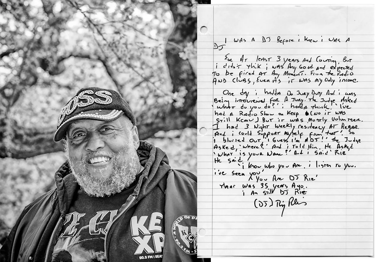 Since 2021, Crick and her Weirdo colleagues—producer Pamela Houle, director Ricardo Frazer, and photographers Rosetta Greek, Lance Mercer, Chris Pugh, and Charles Peterson—have been photographing folks that were part of the Pacific Northwest music scene from 1985 to 1995 in front of a local landmark of their choosing, and collecting their handwritten memories and stories.