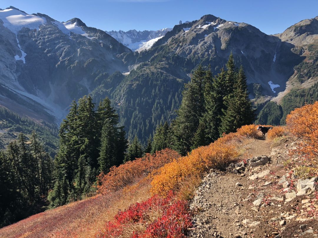If there was one blockbuster fall color hike, it’s this high elevation trail with a color already in its name. Only a few miles south of the Canadian border, it’s accessed via an unpaved road near Mount Baker Ski Area. The Cascade blueberry shrubs and heather plants put on a reliable show, and thanks to big views of rock formations and a lot of color-changing brush, it’s a popular destination. Tip for escaping crowds: Nearby Hannegan Peak is often a lot quieter.