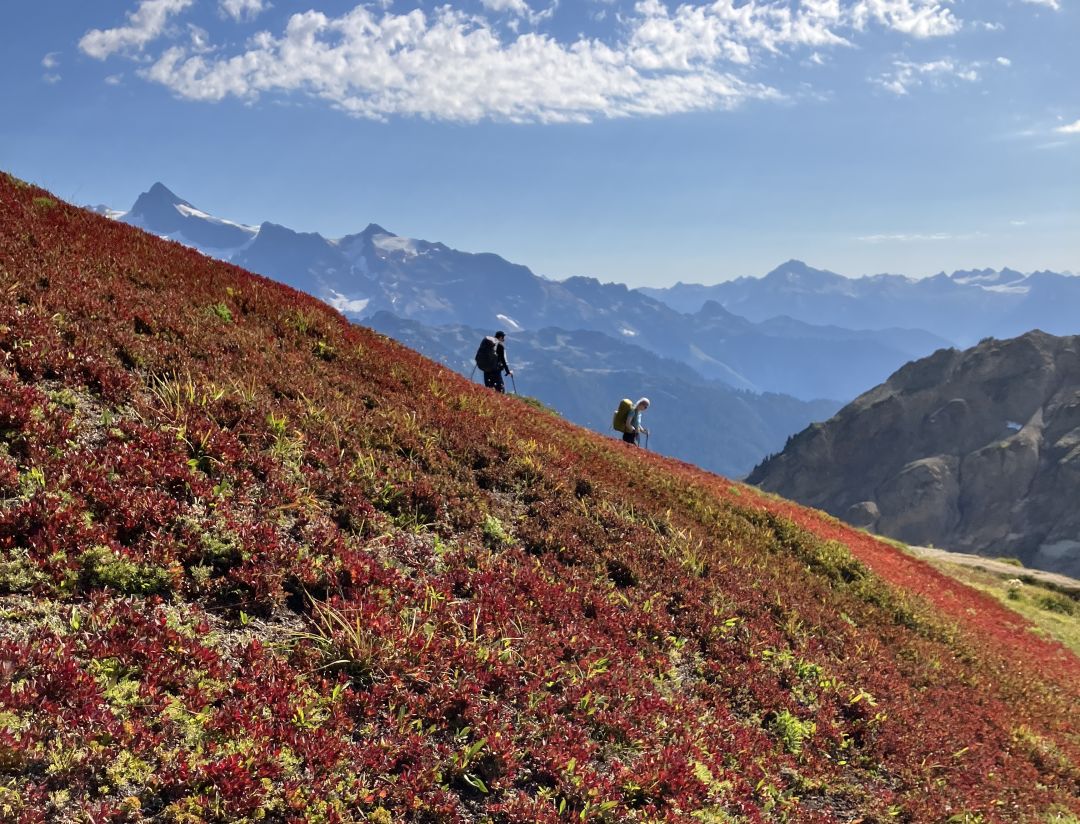 Fall foliage near Mount Baker, here on Hannegan Peak, includes alternatives to the season’s signature yellow trees.