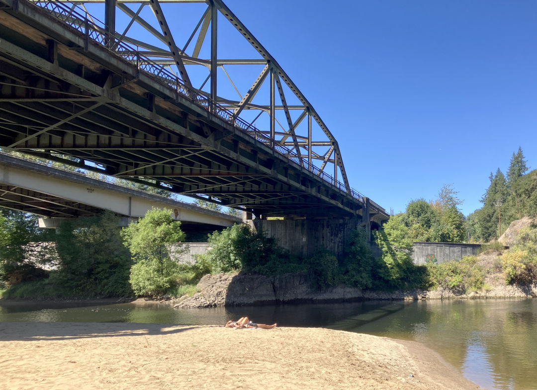 The Washington State Park system has some breathtaking gems and wilderness holdings…and it has this park, located under I-5 bridges. But its sandy beach on the East Fork Lewis River takes only a few moments to reach (and offers some stunning Mount Adams and Mount St. Helens views near the off-ramp) and I quickly bookmarked it as a good place to let a dog or kid get their feet wet on a hot day. There is also camping and a disc golf course. Where else can you recreate under I-5?
