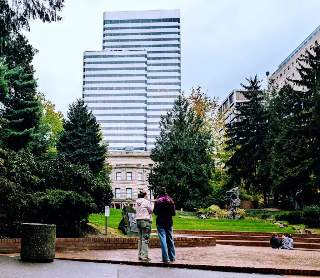 The pic above was taken on Saturday (October 12) in a war zone called Downtown Portland. One could walk, in a matter minutes, from here to where the clarinetist in a banana costume was arrested. And what did I see on that fine rainy day? Portlanders doing Portlandish things—drinking coffee, drinking in dive bars, walking, biking. So, what’s all this war zone nonsense really about? Trump is punishing a predominantly white city for demonstrating, at the beginning of this decade, the importance of Black lives. This was the original sin. This, and nothing else, fuels the obsession with Antifa. White people caring about Black people. Trump would not be in power if the majority of white people recognized the humanity of brown and Black people.