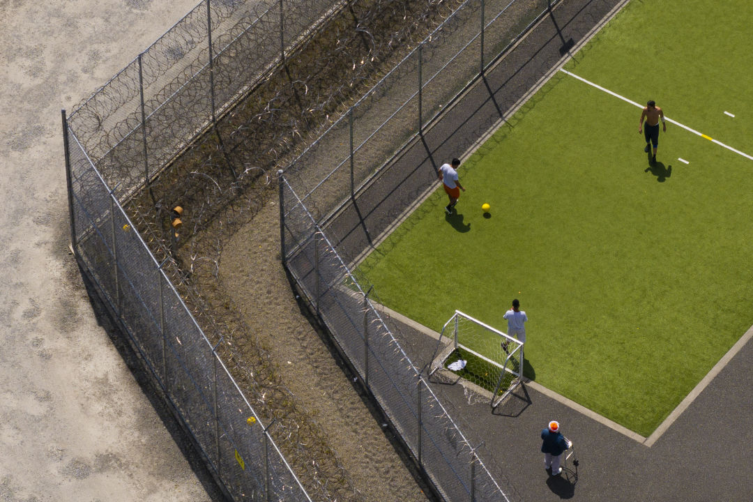 This is a quiet and lonesome stretch. Family members idle in their cars, waiting for visiting hours. White vans silently ferry detainees in and out of the facility. The sound of trains and nearby industrial work lingers in the background.