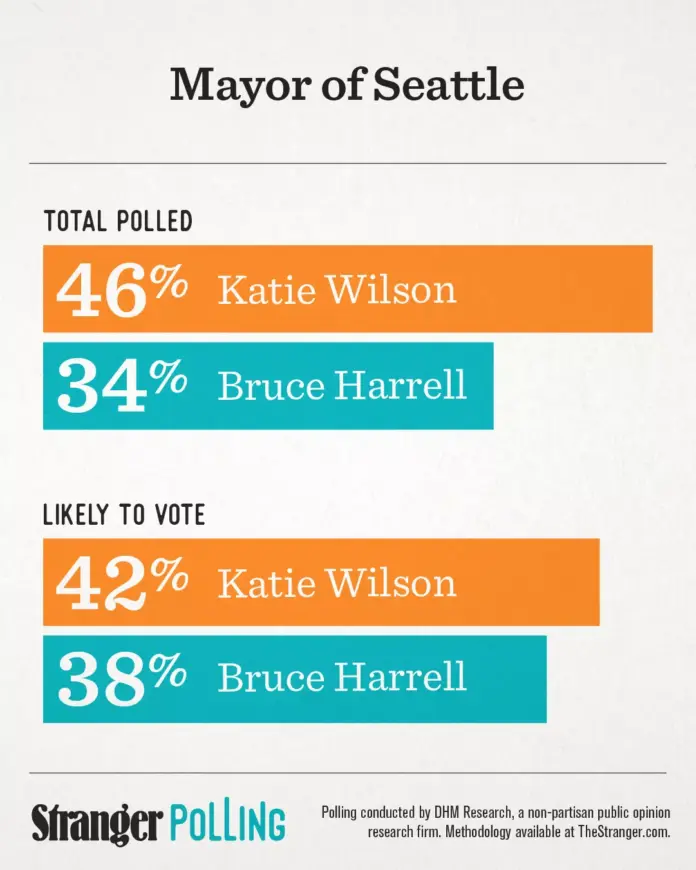 The tightest race is for the mayor’s office. While Katie Wilson is four points ahead of Bruce Harrell with likely voters, her lead is within the margin of error. That means they’re statistically tied.