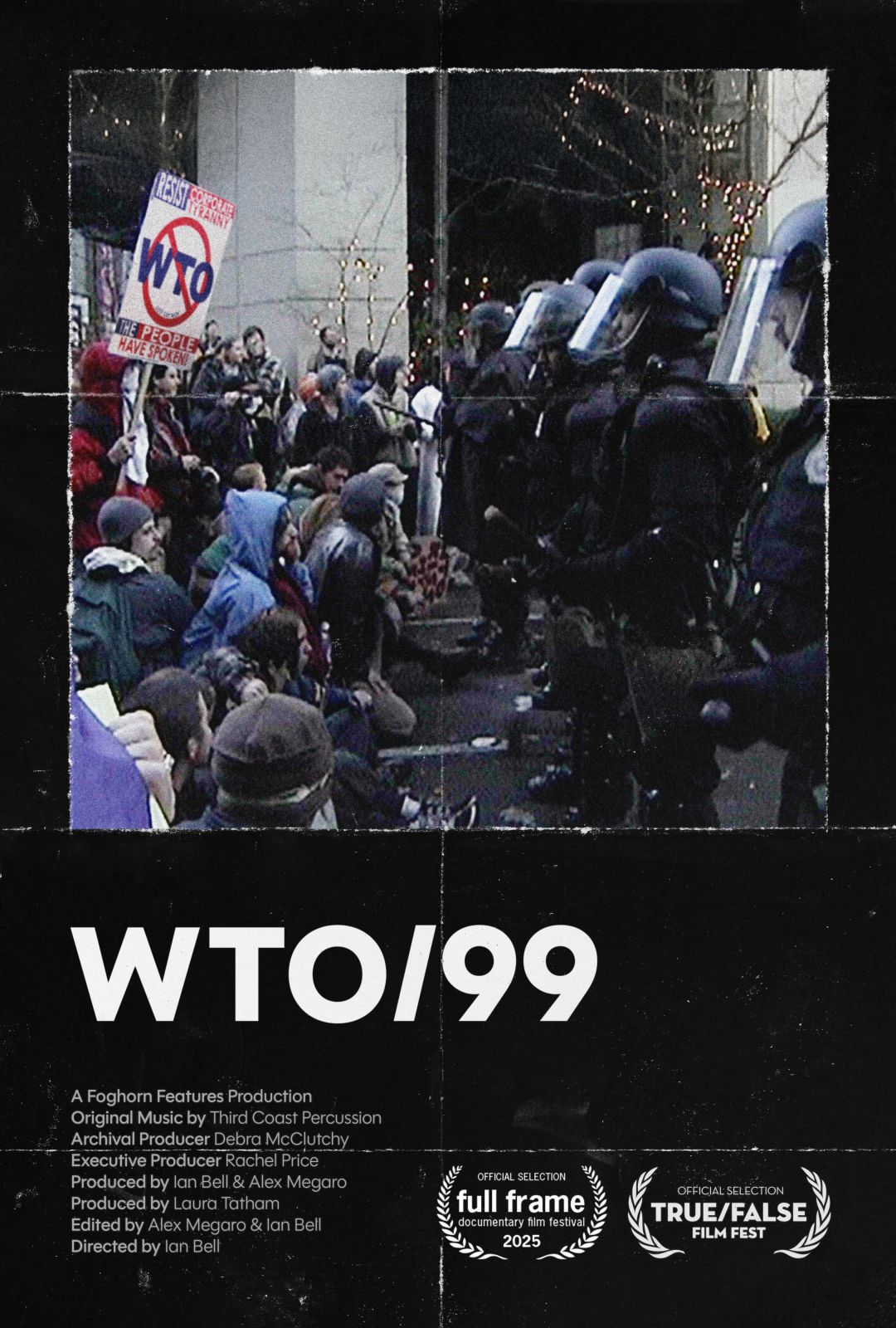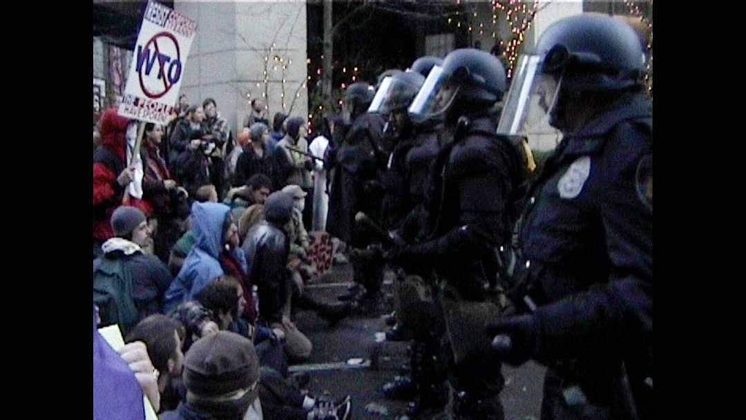 WTO/99 screens at the Northwest Film Forum on November 6, and then again December 5–7 and 13 & 14; at the Bainbridge Island Film Festival on November 8 & 9; and at SIFF Cinema Uptown on November 23 for the Seattle Film Critics Society Pacific Northwest Award screening series.