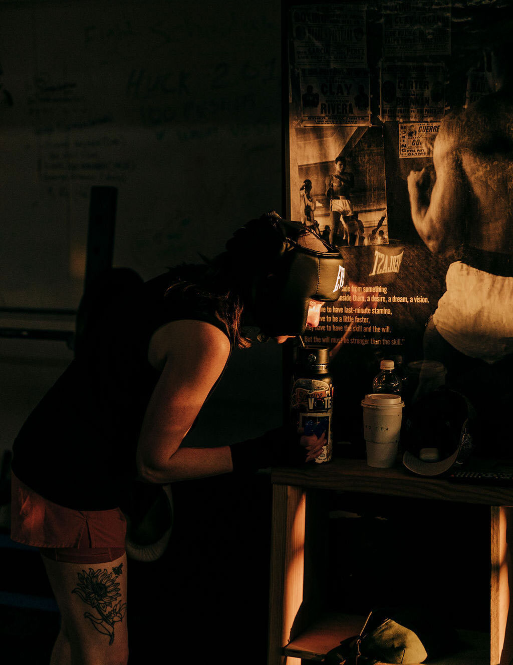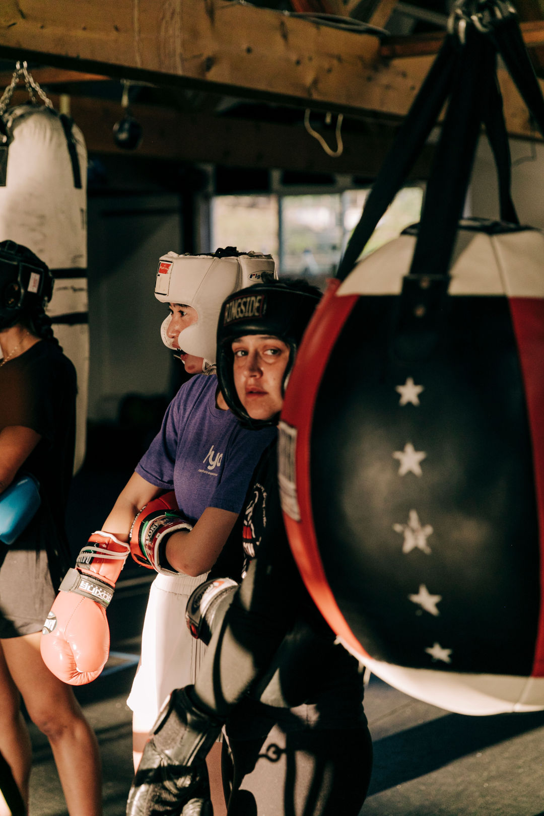 During feedback circles at the end of the night (pictured below), Coach Manny asks the boxers to share what they noticed about each other’s technique in the ring. The conversation is a mix of pointing out what worked and what didn’t. Billie Thorndycraft (pictured above) believes boxing is a sport that requires this kind of vulnerability. “You don’t get good,” she tells me, “unless you accept that you suck.” She thinks this is especially hard for women to accept: “There’s lots of reasons there’s no women in this sport, but a big reason is men suck when they come in and they learn because they’ve been given permission to learn. But women come in and they suck and they think that it’s some failing of character, as opposed to an opportunity to grow.”